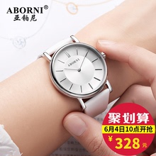 正品亚铂尼手表男女士石英表男表防水真皮带女表简约时尚情侣手表