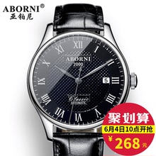 正品亚铂尼手表男士机械表男表镂空真皮带防水女表时尚情侣手表