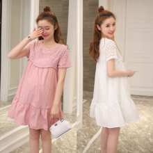 2017新款孕妇装夏装时尚潮妈连衣裙韩版蕾丝拼接宽松中长款孕妇裙