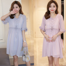 孕妇装2017新款韩版孕妇裙韩版雪纺五分袖上衣系带孕妇连衣裙潮妈