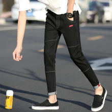 春季日系哈伦弹力小脚裤男生修身青少年学生设计款拉链收腿牛仔裤
