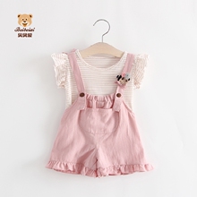 女宝宝套装短袖0-1-2-3岁韩版纯棉短裤可爱休闲女童装 婴儿两件套