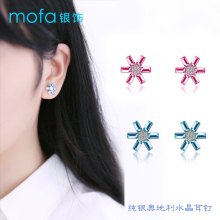 时尚人造奥地利水晶钻耳钉女蓝色方形彩钻梅花耳饰品防过敏不掉钻