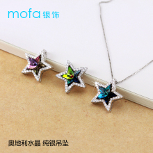 正品S925纯银镀金五角星星吊坠项链女生礼物镶嵌人造奥地利水晶钻