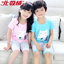 北极绒儿童短袖套装男女童T恤套装印花糖果色夏季宝宝薄款两件套
