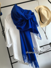 出口绒尖高品质 厚款水波纹纯牛奶羊绒宝石蓝大围巾/披肩 巨美