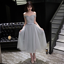 晚礼服2017新款时尚修身长款宴会主持人连衣裙灰色伴娘服显瘦夏季