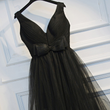 晚礼服2017新款时尚黑色短款宴会主持人小礼服连衣裙v领大码显瘦