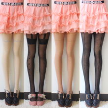 特价公主范白色复古图腾条纹五角星花纹甜美连裤袜 丝袜打底袜裤