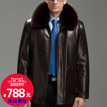 新款真皮皮衣男特价中老年尼克服狐狸毛领绵羊皮皮衣皮草男装外套
