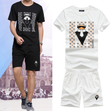 夏季男装短袖短裤两件套装 潮男韩版修身T恤五分裤休闲运动服大码