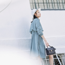 云上生活 新运动棒球领收腰伞摆防风抗皱风衣女中长款外套F8711