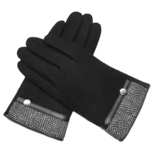 包邮秋冬男士羊毛羊绒皮革裹边金属扣简约双层加厚加绒触屏手套