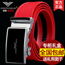 卓梵 阿玛尼红色皮带真皮男本命年自动扣猴年结婚大红青年腰带