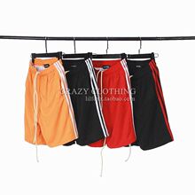 折扣包邮 网眼料绸缎内衬高街吊绳松紧腰大热比伯同款三条杠短裤