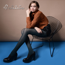 creasugi华姿伊新款春秋连裤袜60D黑色提花丝袜美腿显瘦黑丝