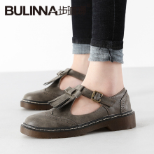 步琳娜学院风小皮鞋布洛克女鞋子森女流苏单鞋女平底复古玛丽珍鞋