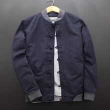 春秋季中国风复古盘扣休闲夹克外套韩版青年修身纯色立领棒球外套