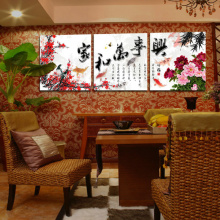特价现代客厅装饰画 无框画九鱼图背景墙壁画挂画家和万事兴三联