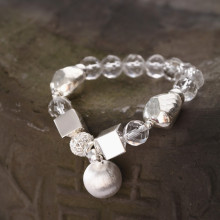纯银饰品原创设计古法白水晶几何体手链圣诞新年礼物