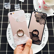 蕾丝花iphone7手机壳超薄浮雕苹果7plus指环支架6splus全包保护套