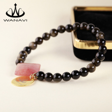 瓦萨比蔷薇晶手链女 韩版天然水晶手串女 时尚金曜石首饰品