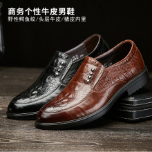 男士商务正装皮鞋男真皮商务皮鞋男式英伦潮鞋尖头鳄鱼纹青年男鞋