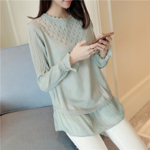 天天特价春季蕾丝拼接假两件针织衫女套头毛衣中长款打底衫女上衣