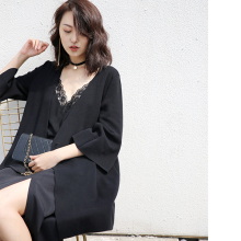 美丽的皇帝 原创自制 简约微喇叭袖中长款V领和风针织开衫九分袖