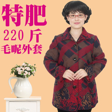 高端定制加肥加大码胖妈妈装 特大号码中老年人女装羊毛呢子外套