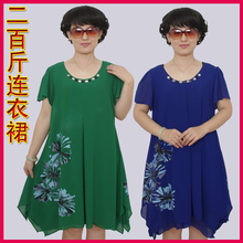 加肥大码200斤胖妈妈短袖连衣裙 印花宽松不规则中老年女裙