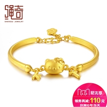 百代绳奇 黄金小猫咪转运珠手链 女款3D硬金足金999手镯子首饰品