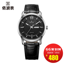 依波表 新款真皮黑面休闲石英表双日历指针式男表国表精品 1108