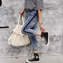 韩版宽松翻边直筒牛仔裤女高腰九分裤2017春夏季新款学生bf风裤子