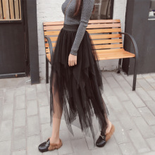春秋韩版百搭高腰纯色不规则网纱半身裙中长款纱裙蓬蓬裙裙子女潮