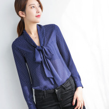 仙气轻奢 2017春新品 复古波点蝴蝶结系带雪纺衬衫上衣 女