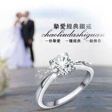 1克拉锆石四爪戒指 瑞士仿真钻戒新娘求结婚礼水晶女戒指尾戒指环