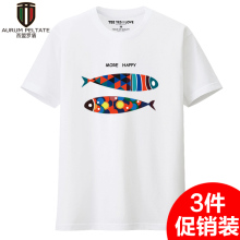 夏季男士短袖t恤衫简约青春小清新创意圆领纯棉印花学生半袖