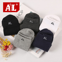 AL男士中厚袜子春秋中筒袜纯色棉袜商务休闲男士防臭男中筒棉袜
