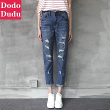 夏装韩国九分bf风破洞牛仔裤女显瘦宽松牛仔裤女大码哈伦裤乞丐裤