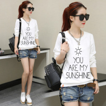 2017韩版春秋新款圆领长袖t恤女装宽松大码上衣休闲T恤打底小衫