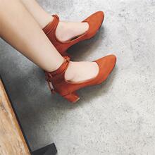 韩版2016秋季新款罗马流苏系带中跟5CM高跟鞋粗跟绑带圆头单鞋女