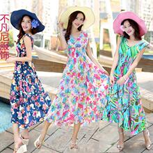 2016夏装韩版新款女装绵绸无袖碎花连衣裙棉绸修身显瘦沙滩长裙