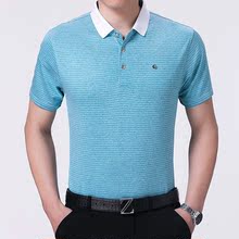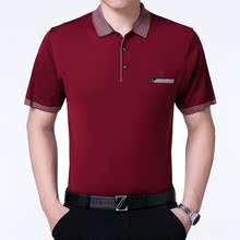 短袖T恤男士中年翻领桑蚕丝T恤衫17新款