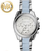 Michael Kors 时尚新款圆盘皮带蓝色日历女士腕表mk手表女MK2425