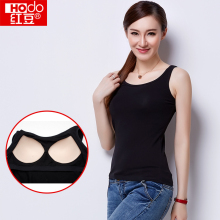 红豆纯棉带胸垫背心女免穿文胸无钢圈胸罩bra吊带罩杯一体打底衫