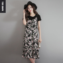 碎花吊带连衣裙2017夏季中长款雪纺吊带裙修身时尚V领百褶鱼尾裙