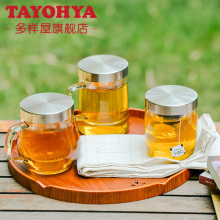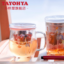 多样屋耐热玻璃茶隔杯加盖过滤水杯子花茶杯透明玻璃杯泡茶杯