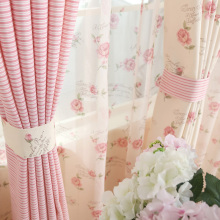 全国测量安装 布蝶轩美式乡村田园条纹碎花拼接白丝遮光窗帘 初见