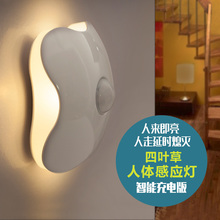 幸运四叶草LED节能创意小夜灯 光控人体感应灯充电壁灯衣柜橱柜灯